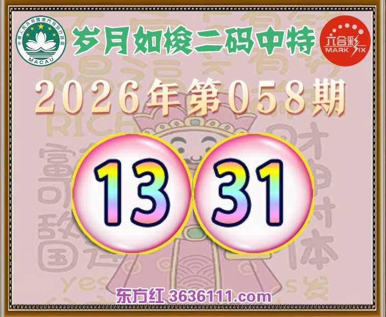 058期:『岁月如梭』 😍二码中特😍【13.31】开:31